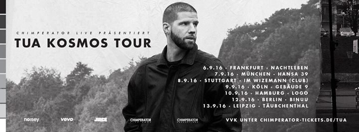 „Kosmos“ erscheint am 17.06.2016 und beinhaltet neun CDs mit Musik aus über 10 Jahren Tua-Musik. Live spielt sich Tua einmal querbeet durch seine Historie aus Alben, EPs und ein durchs Internet geisternder Katalog aus einstmaligen Downloads und Remixen. Alle seine großen Anti-Hits wurden dabei vom Maestro persönlich in eine Live-Version gebracht und werden auf der Tour von einem bekloppten Drummer, einem wahnsinnigen Jazz-Gitarristen und Synthesizer und natürlich Tua selbst umgesetzt.
