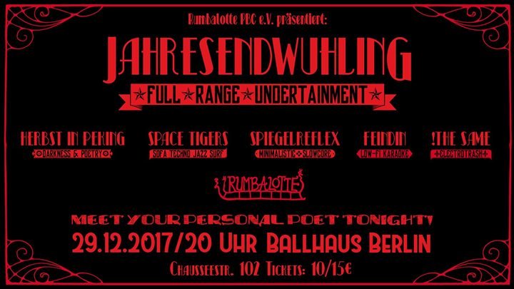 Diginights ist nicht Veranstalter dieses Events. Die Events werden von Veranstaltern, Locations eingetragen oder über Schnittstellen eingespielt. Wir sind lediglich Hostprovider und daher nicht verantwortlich für Inhalt oder Grafik. Bei Verstößen gegen das Urheberrecht verwenden sie bitte die "Report event" Funktion.