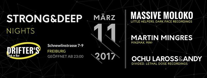 Das Imprint Strong&Deep von Massive Moloko startet eine neue Partyserie im Freiburger Drifter's Club. Grad erst kam sein neuestes Release auf dem renomierten Label "Little Helpers" raus. Zusammen mit Ochu Laross&Andy bringt er den ganz speziellen Tech House und Techno Sound mit in die Breisgaumetropole. Mit an Bord ist diesmal Drifter's Resident und "min2max"-Head Martin Mingres.