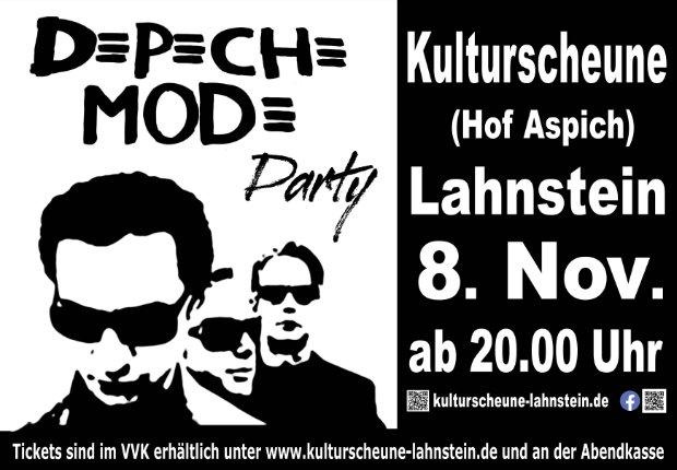 Die Kulturscheune Lahnstein auf dem Aspich läutet die dunkle und graue Jahreszeit passend mit der am Samstag 8. November ab 20:00 Uhr stattfindenden Depeche Mode Party ein.