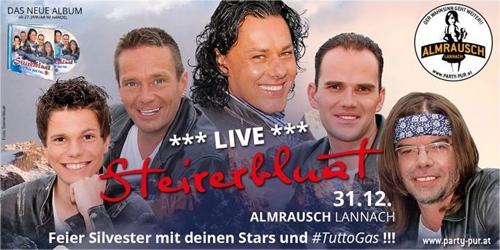 Wir präsentieren Euch die Mega Silvesterparty mit Steirerbluat live!!