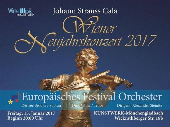 Dazu präsentiert die WinterMusik ein Wiener Neujahrskonzert mit dem Europäischen Festival Orchester. Die mehr als 60 Musiker spielen unter der Leitung des Salzburger Dirigenten Alexander Steinitz „the best of Johann Strauss“. Gesangssolisten (u.a. von der Oper Köln) singen beliebte Arien aus „Fledermaus“, der wohl berühmtesten Operette des Komponisten. Walzerklänge und der unverwüstliche Radetzkymarsch gehören natürlich ebenso zum Programm.