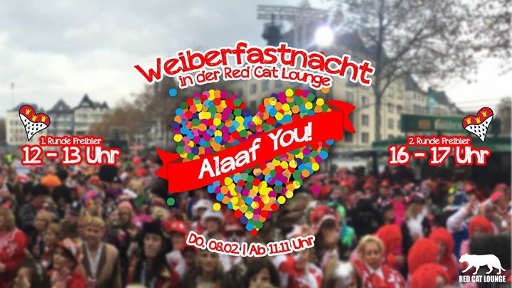 Wir öffnen die Red Cat Lounge an Weiberfastnacht bereits um 11.11 Uhr und beglücken euch mit der ersten Runde #FREIKÖLSCH von 12.00-13.00 Uhr!