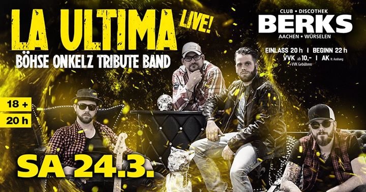 Die Band La Ultima aus Mönchengladbach hat sich mit ihrer Show seit 2007 einen festen Rang als einzigartige Böhse Onkelz Cover/Tribute Band in ganz NRW erspielt.