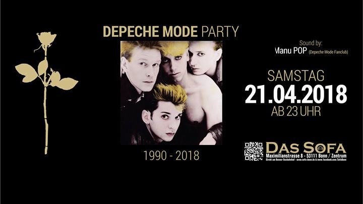 Die bekannte Depeche Mode Party findet im April 2018 wieder am dritten Samstag in den Räumlichkeiten des Clubs ”Das Sofa” in Bonn, direkt am Hauptbahnhof statt. Neben Originalen Singles von Depeche Mode gibt es auch wieder rare Live Versionen, Remixe und 12 Inch auf die Ohren, drumherum wie immer Sound der 80er Jahre, Synth- und Bodypop, EBM usw…