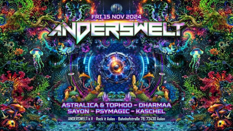 Musikalisch erwartet euch alles, was die Anderswelt ausmacht: Von treibendem Psy Trance, über hypnotischen Fullon und mystischen Nightpsy, bis hin zu energetischem Melodic Hitech – eine bunte Mischung für alle Liebhaber der elektronischen Klänge.