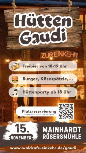 Lange gewünscht – endlich kommt sie: die Hüttengaudi in der Rösersmühle. Urig, zünftig, gemütlich – mit Bombenstimmung in der „Hütte“ im Rottal.