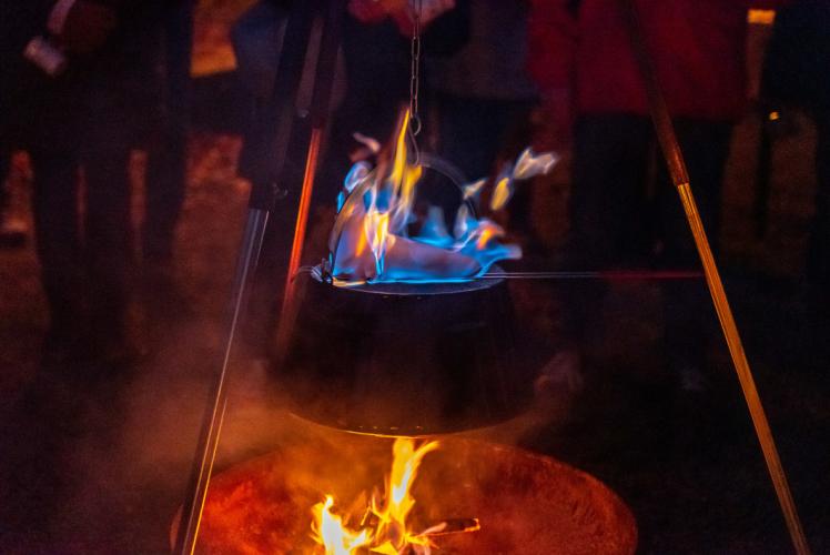 Leistung: 1 Begrüßungsgetränk, 2 verschiedene Glühweine, Snacks und zum Abschluß Feuerzangenbowle und Grillwurst am Lagerfeuer.