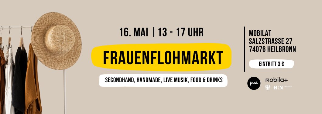 Am Samstag, den 16. Mai 2026 verwandeln wir das Mobilat in Heilbronn von 13:00 - 17:00 Uhr in einen Frauenflohmarkt mit Live Musik & Café-Vibes.